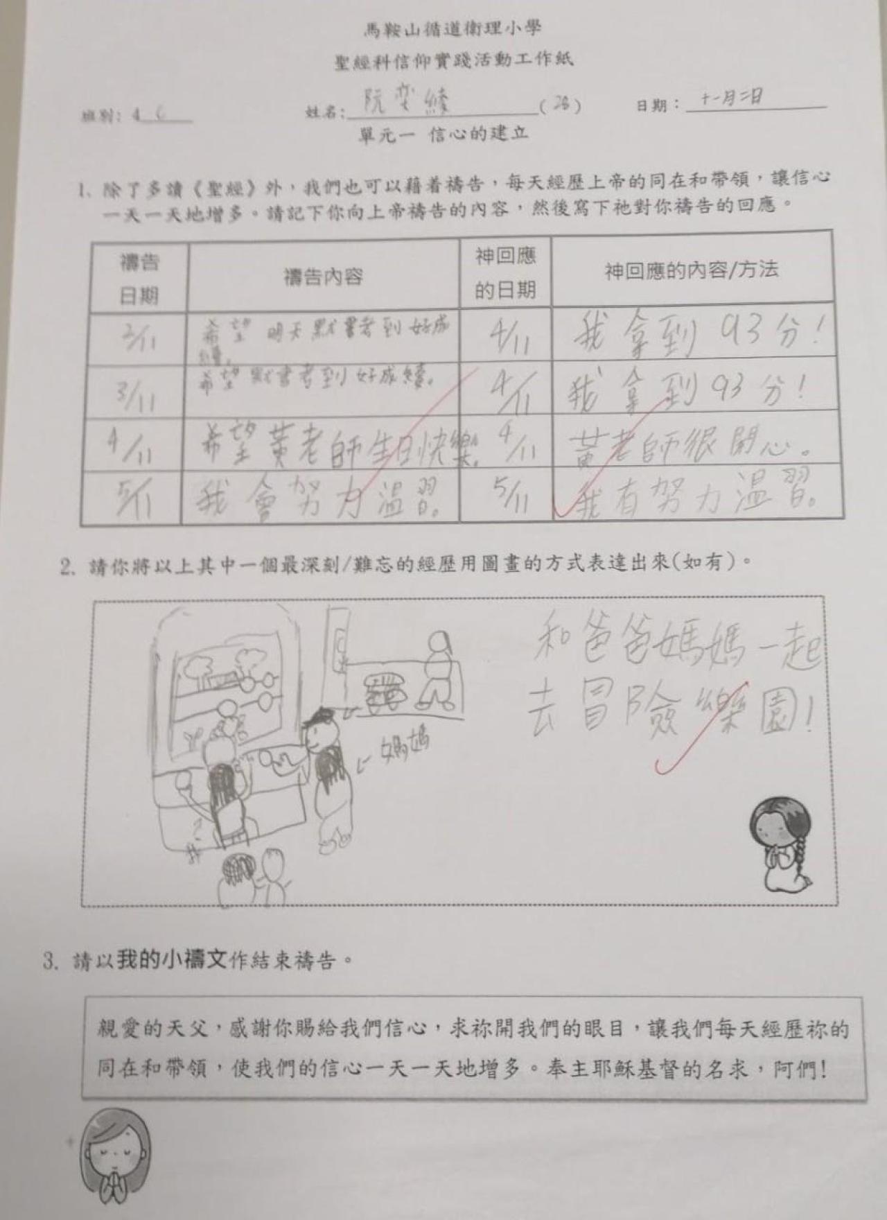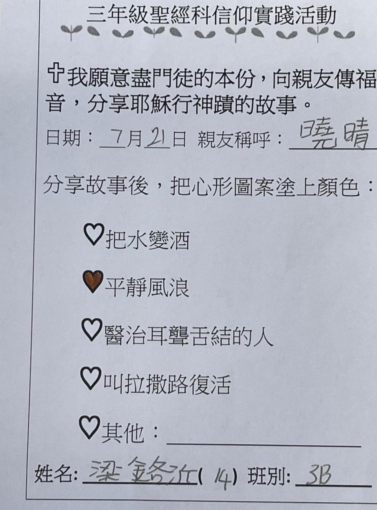 2.7.1 配合生命教育日,三、四年級學生學習對神的忠心及凡事倚靠神。