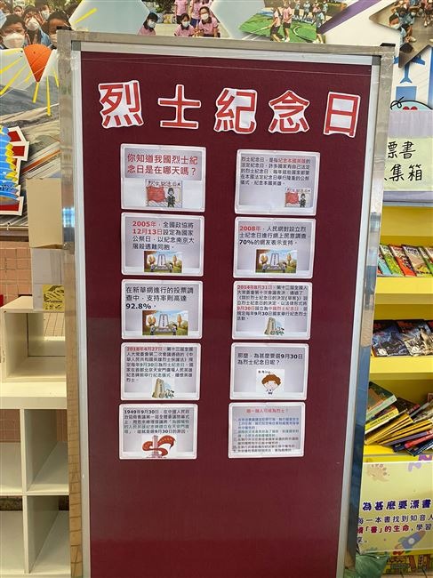 為了讓學生更了中秋節、烈士紀念日及國慶日的意義及由來,學校透過不同的活動,例如展板介紹、網上問答比賽、猜燈謎活動升旗禮及國旗下講話,提升學生的國民身份認同。