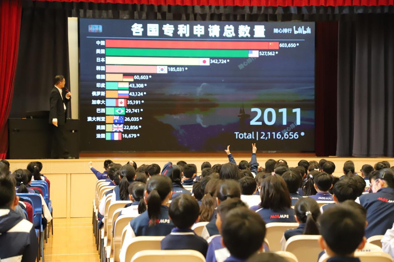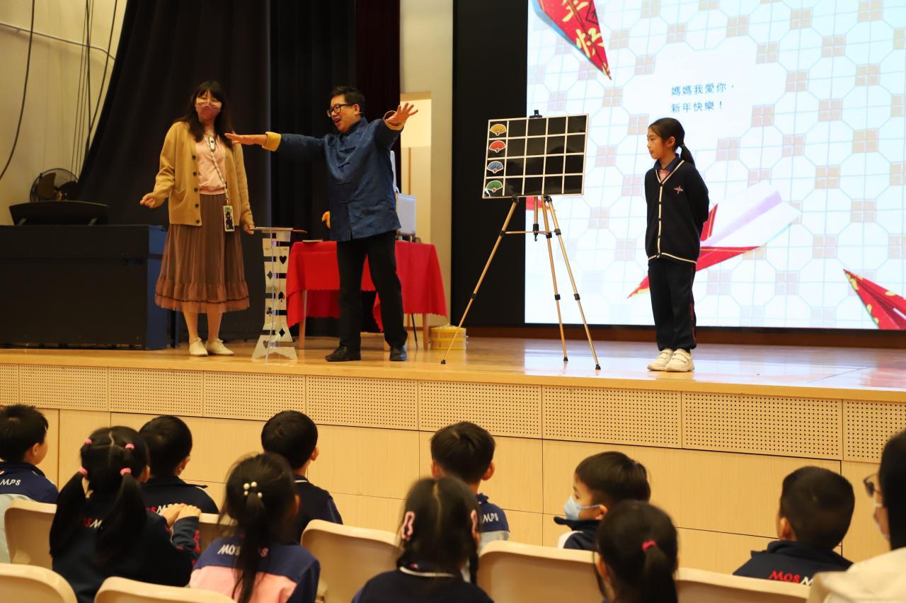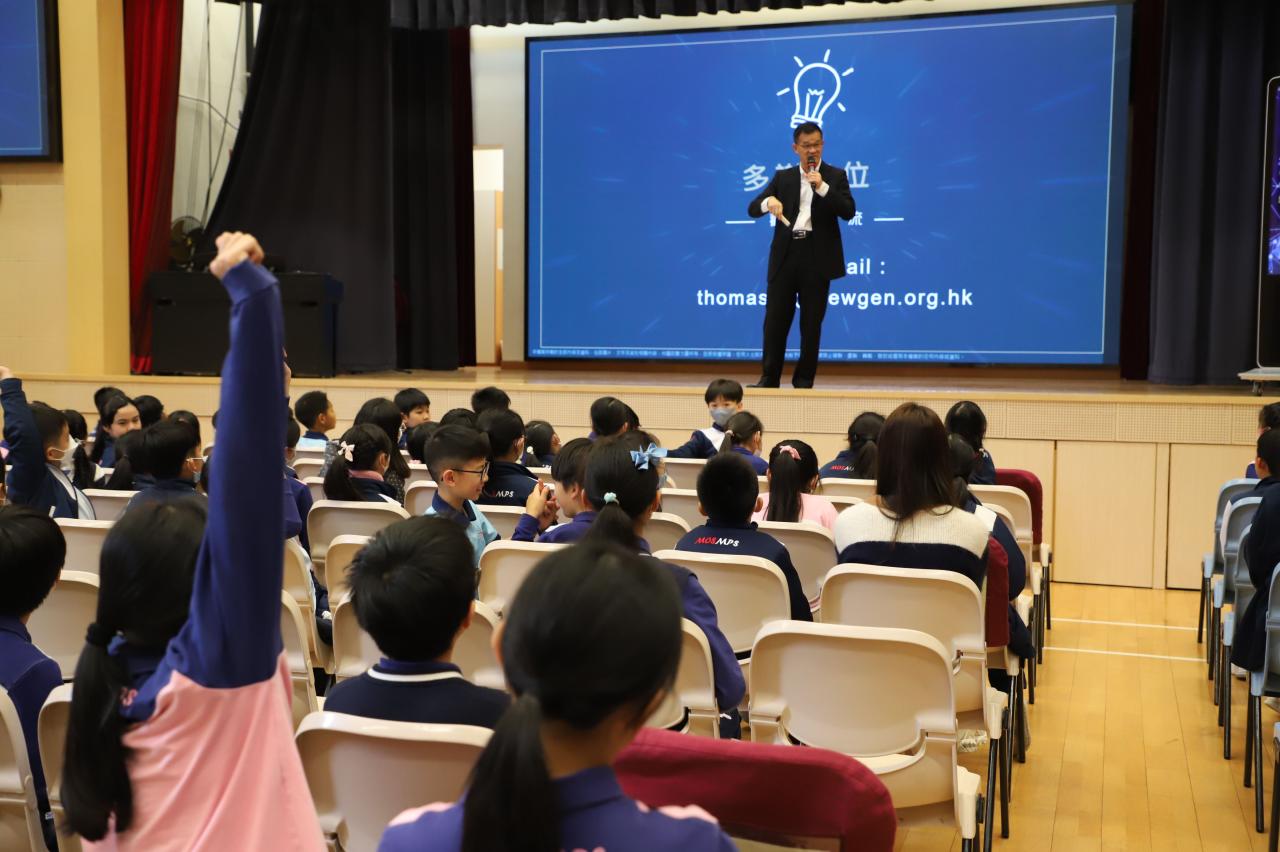 2024-02-06 德育、公民及國安教育組為提升學生的國民身分認同,於周會時段邀請不同的講者進行國民教育講座,低年級以魔術及故事的形式讓學生多認識中國的文化,例如造紙術、飲食文化、故宮建築及新年的節日特色等。高年級則邀請了蘇祉祺博士以專題的形式講解中國創科之路的發展,同學們都很投入,並踴躍地向蘇博士提出不同的問題。