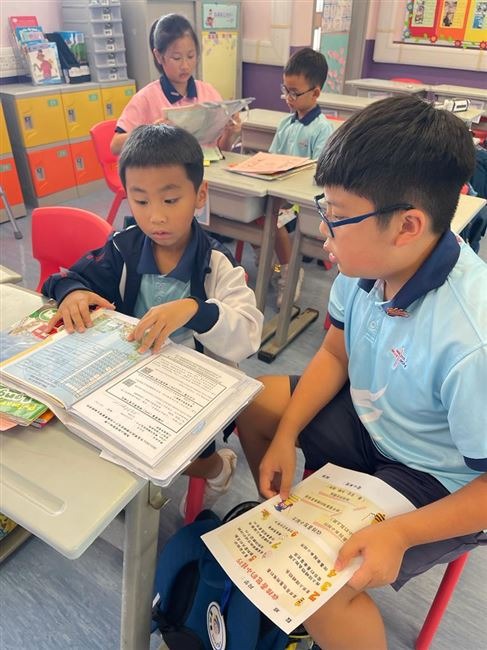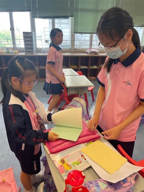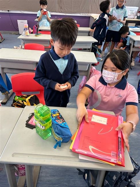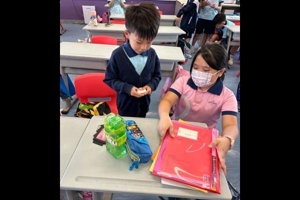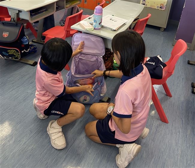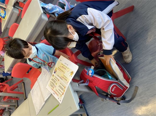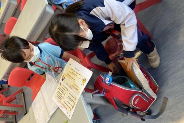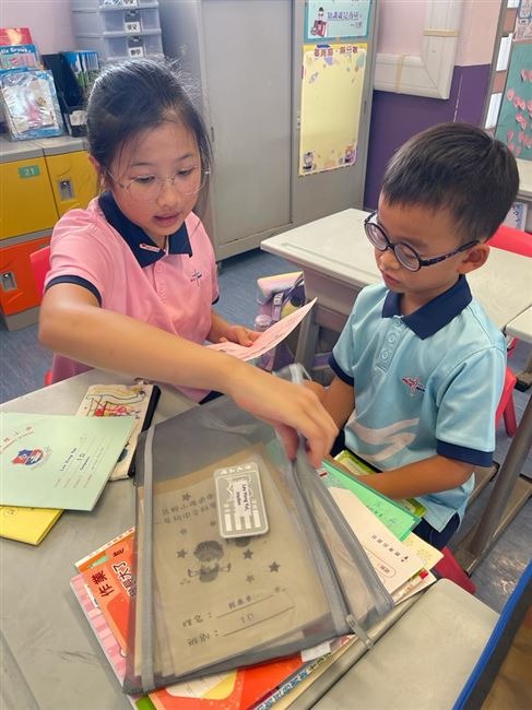 愛心大使化身為自理小天使,到一年級班房教導部分小一同學收拾書包,學習照顧身邊的人。
