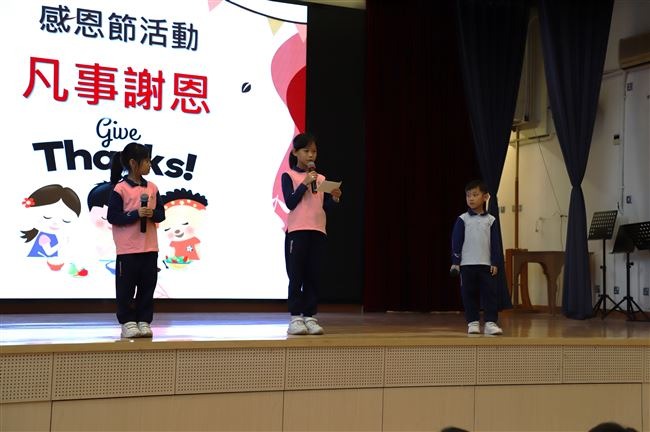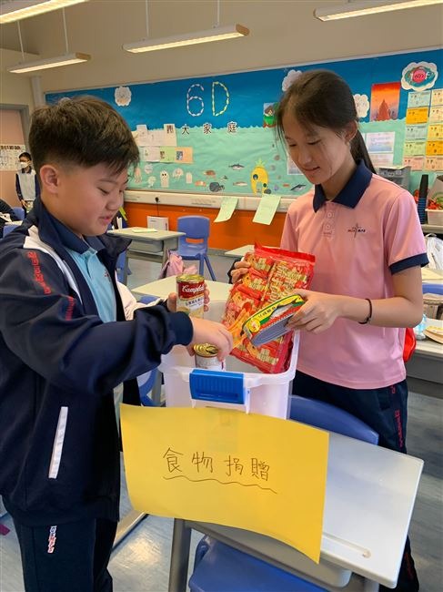 2023-11-27 為慶祝感恩節,學校宗教組於27-28/11/2023舉辦感恩節周會,讓學生明白感恩節的意義,另外,學校舉辦「捐獻食物活動」,請同學從家中帶食物回來學校捐贈,在此欣賞同學樂善好施,稍後我們會把食物送至食物銀行,給有需要的人。