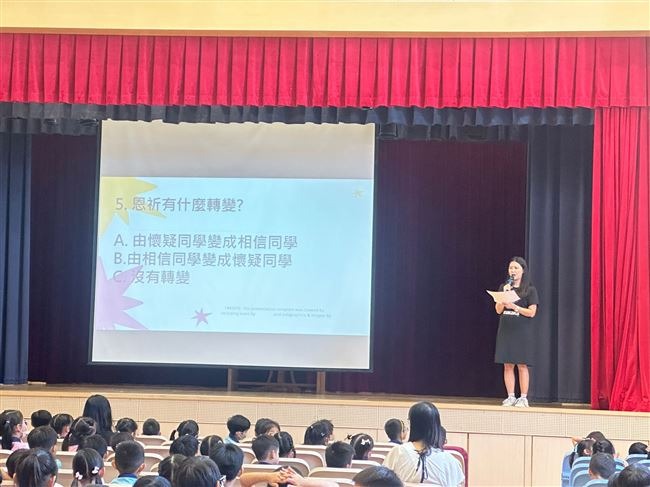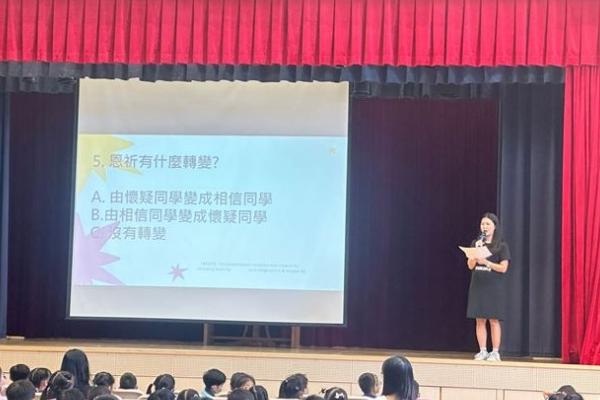 透過周會主題「獨特的我」 教導學生認識自我概念及透過建立安全感來提升學生的自尊感。