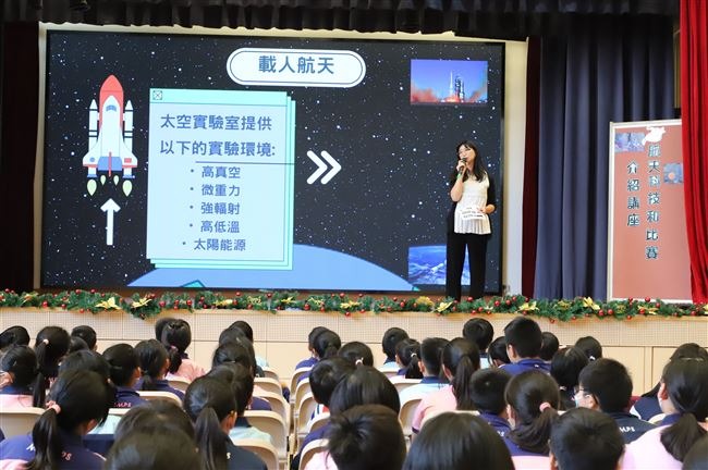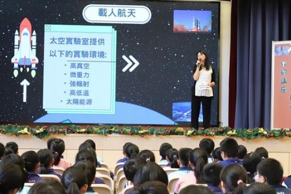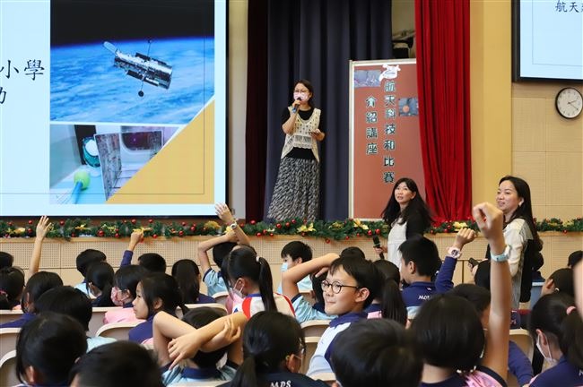 2023-12-05 本校舉辦航天科技及比賽介紹講座,希望藉此提升小五、小六同學對航天科技的認識,並向同學介紹「航天創意校內賽」,鼓勵同學選擇航天相關方向進行深入思考,突破技術和思維局限,設計有創意的解決方案。