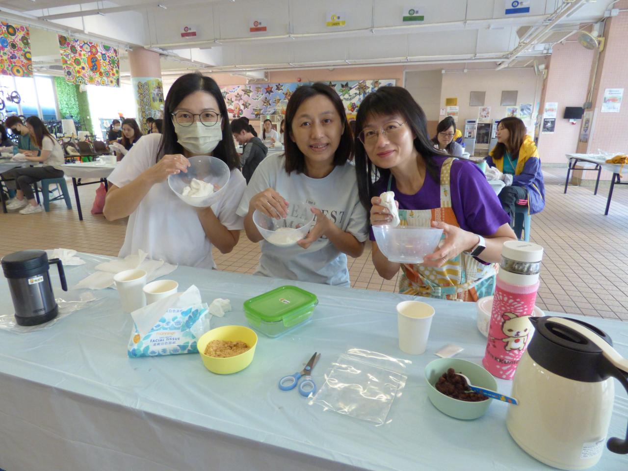 2024-05-14 本校邀請了香港挪亞方舟、糕點時光有限公司及香港教育大學健康與體育學系高級講師陳靖逸先生為本校教師提供了「認識中國文化及教師身心健康工作坊」,在是次工作坊中,教師透過學習製作龍鬚糖或茶粿,認識中國文化;另外透過進行伸展運動,改善身體柔軟度及增加對健康體適能的關注,並培養恆常運動的習慣。