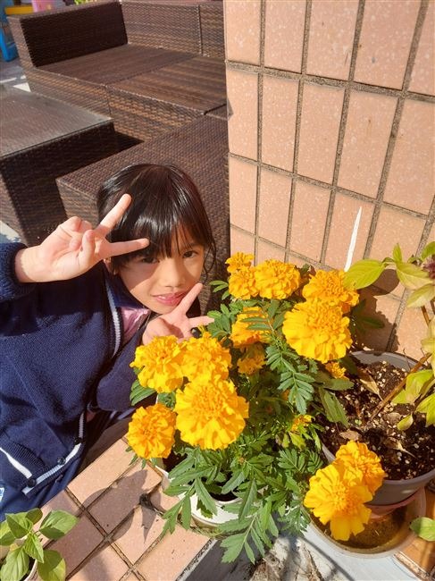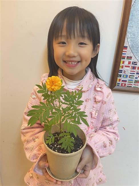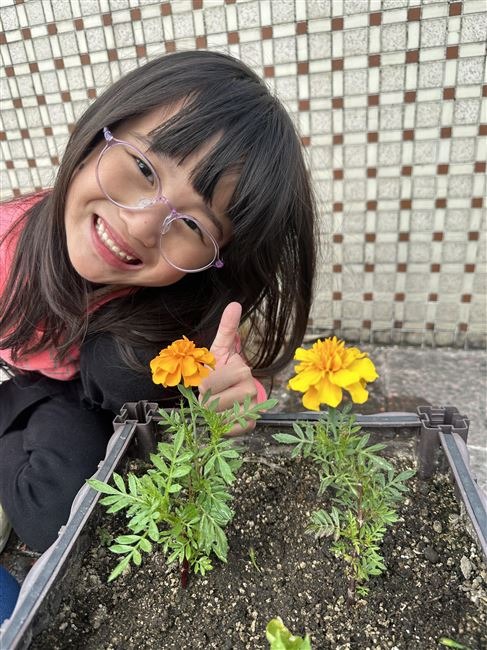 為鼓勵學生支持環保及提高種植花卉的興趣,本校參加由康樂及文化事務處舉辦的「一人一花計劃」,並將於2023年11月22日至2024年3月26日期間進行種植活動。與自己種植的萬壽菊合照,開花的萬壽菊與同學們相相影照,十分漂亮。