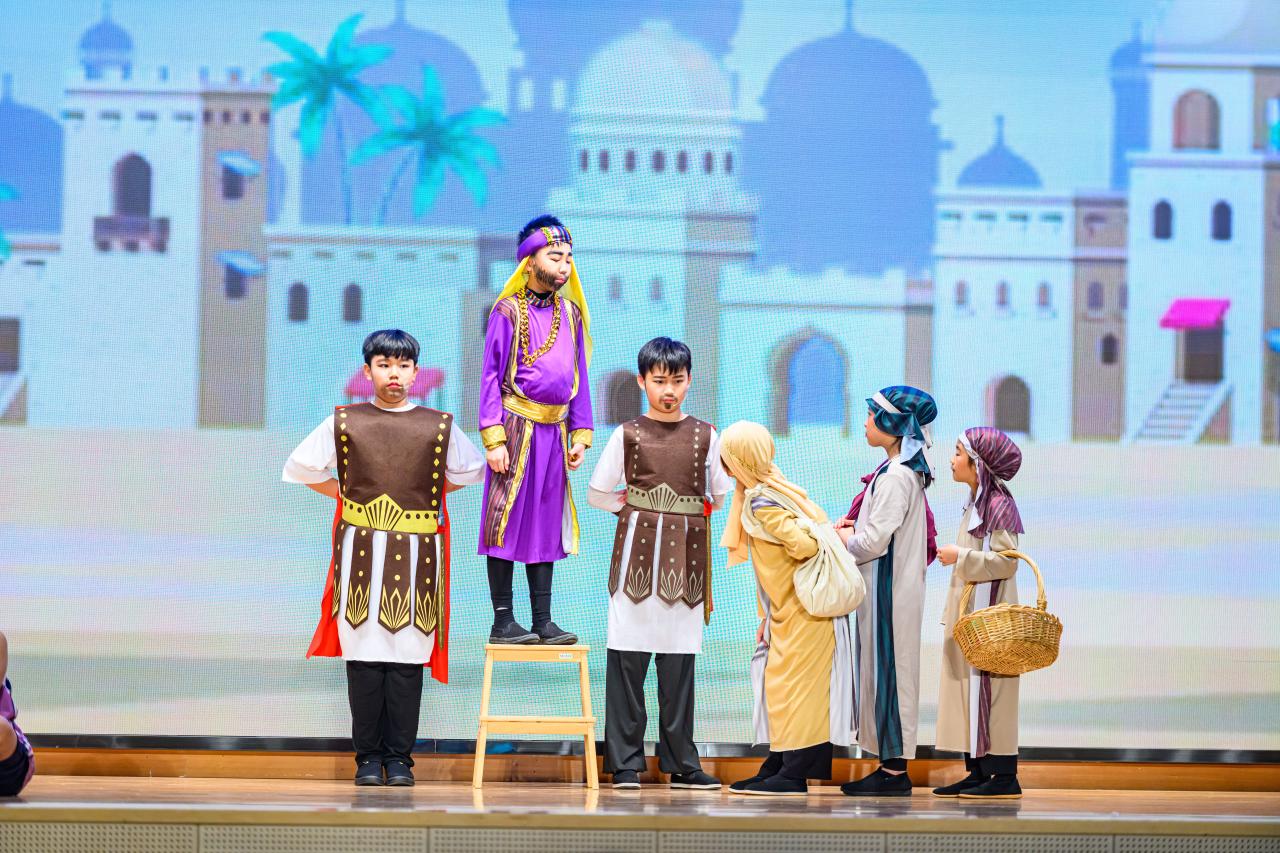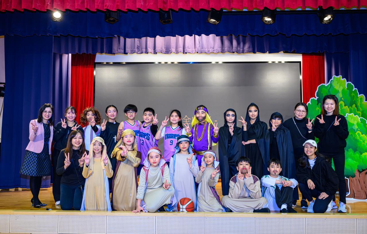 2024-03-14 本校粵語話劇組於2024年3月14日參加了2023/24香港學校戲劇節比賽,是次劇目「中場Master Class」是以聖經故事帶出「尋找真道」的主題。話劇組同學在導演和老師們的指導下,經過連月來用心的排練,終於能在舞台上展現成果,獲得評判的肯定和讚賞。一眾小演員能從戲中學習到堅持不放棄的精神,讓困難都迎刃而解,在此也感謝各家長義工協助學生化妝,使表演更有戲劇效果。