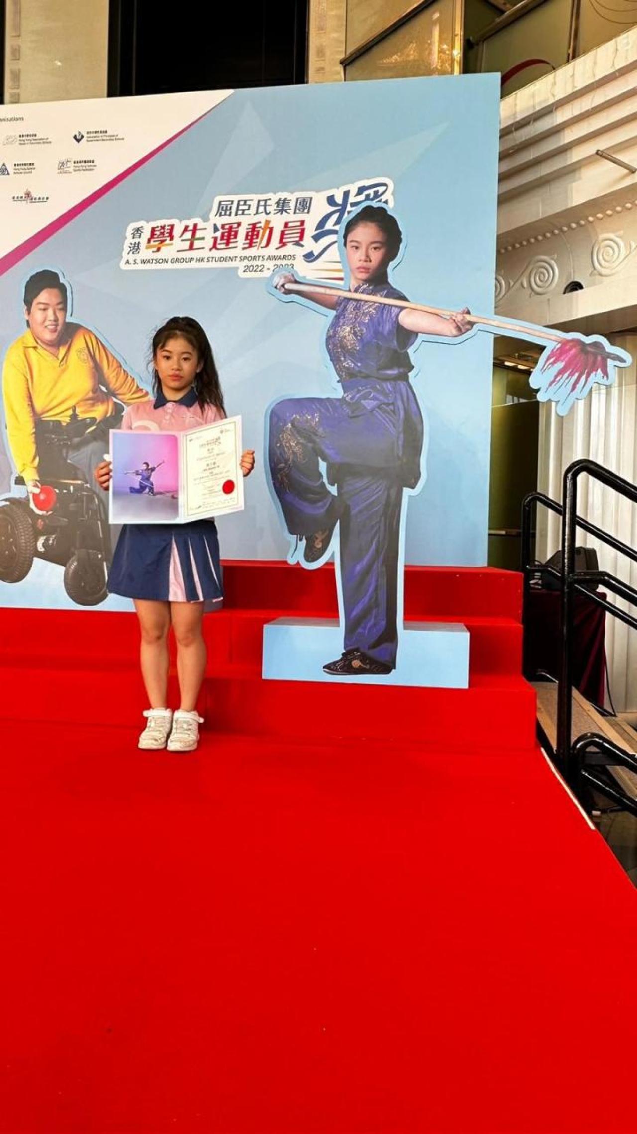 2023-05-21 地點:置富都會7樓中庭主辦:屈臣氏集團負責人:陳嘉明老師6D周子桐同學在武術和田徑運動均有傑出的成績,在2022年,子桐代表香港參加第八屆世界青少年武術錦標賽勇奪冠軍,因此獲得校長和各體育科老師推薦參加屈臣氏學生運動員獎,並且成功獲選。在5月21日頒獎禮當天,子桐獲得大會邀請在典禮中表演,其演出糅合功夫與舞蹈,十分精彩,得到全場掌聲。