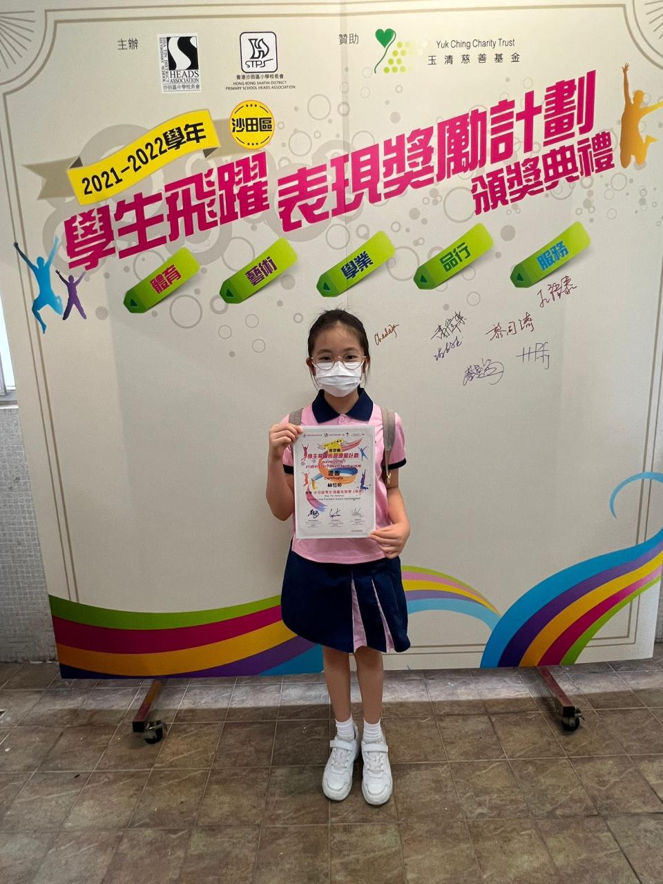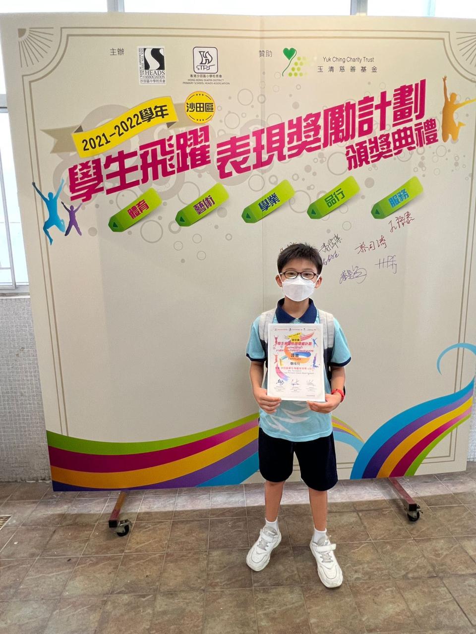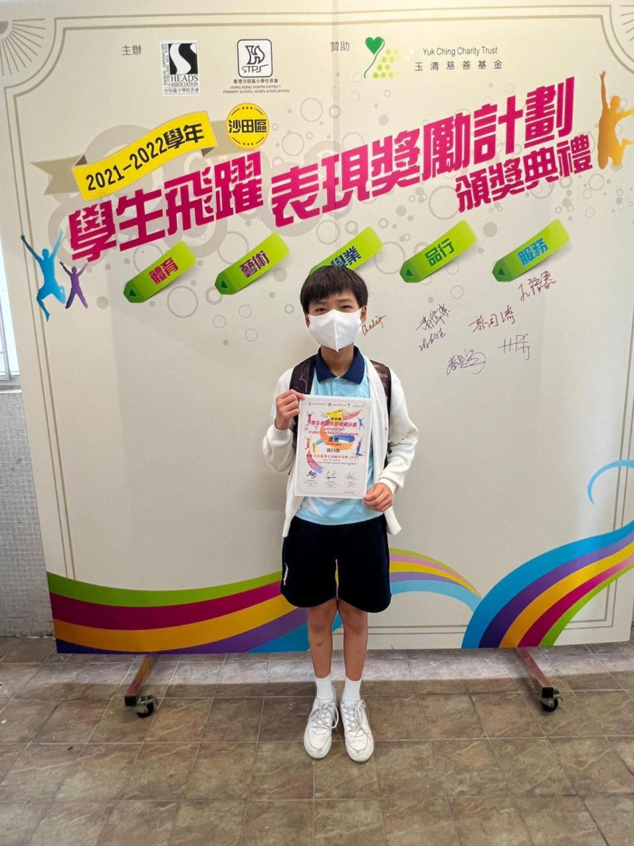以下得獎學生於品行/學業/體育方面有顯著進步及出色表現,獲學校推薦參與沙田區學生飛躍表現獎勵計劃,獲得玉清慈善基金獎學金$500及証書,並應邀出席頒獎禮。