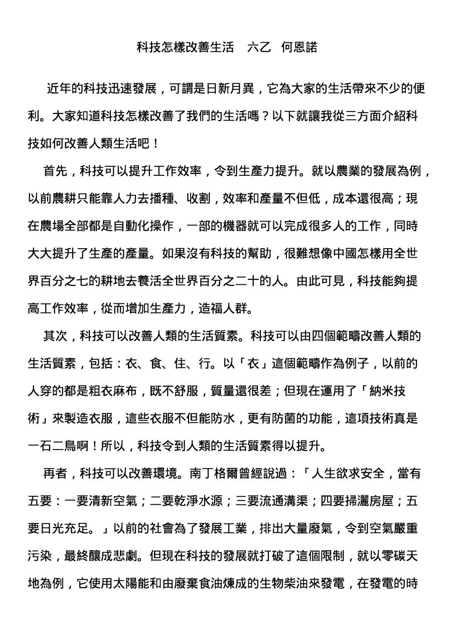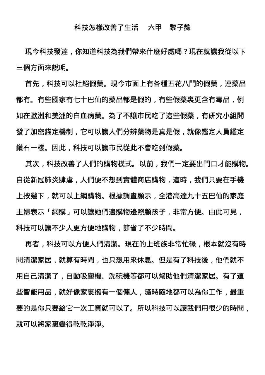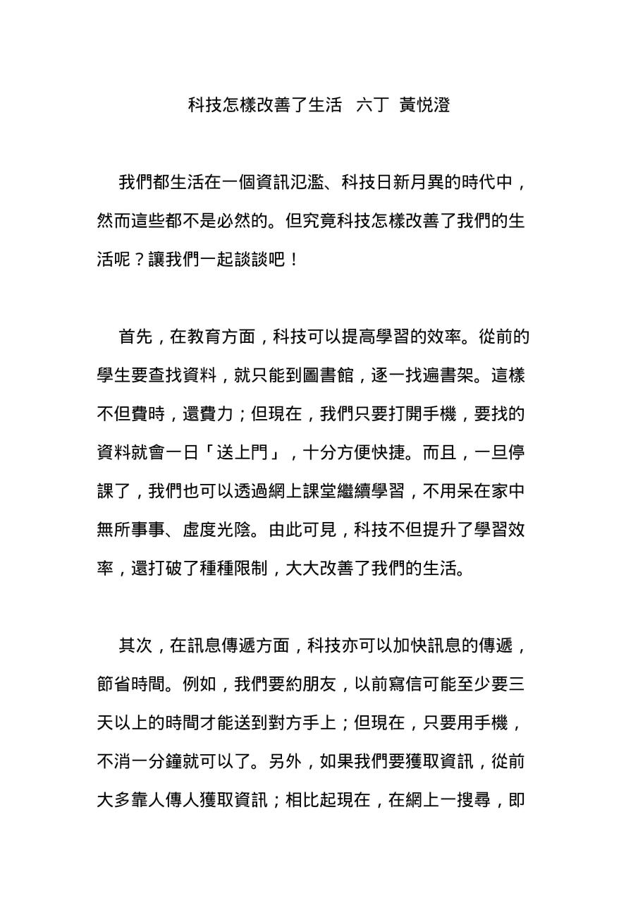 科技怎樣改善了生活 六丁 黃悦澄_0
