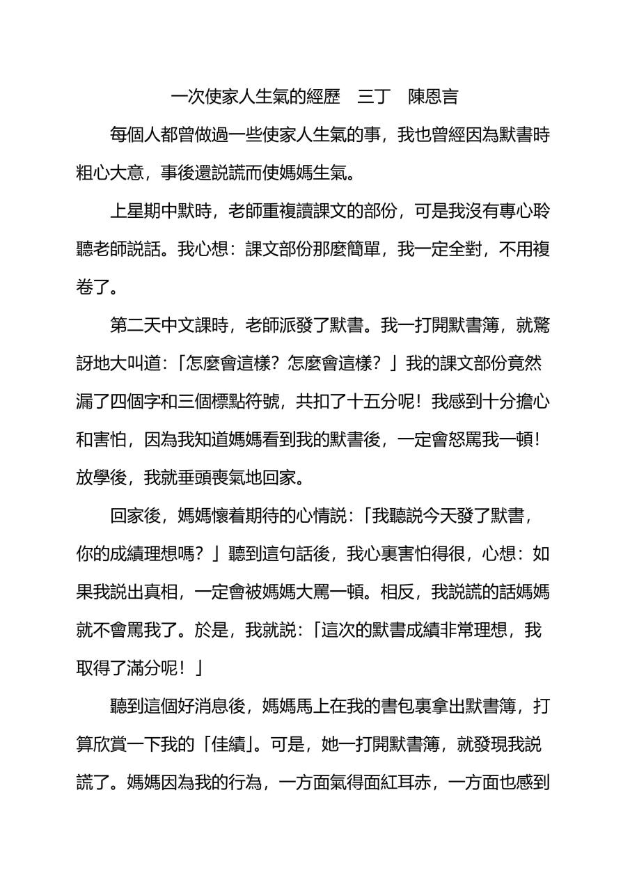 一次使家人生氣的經歷 三丁 陳恩言-1