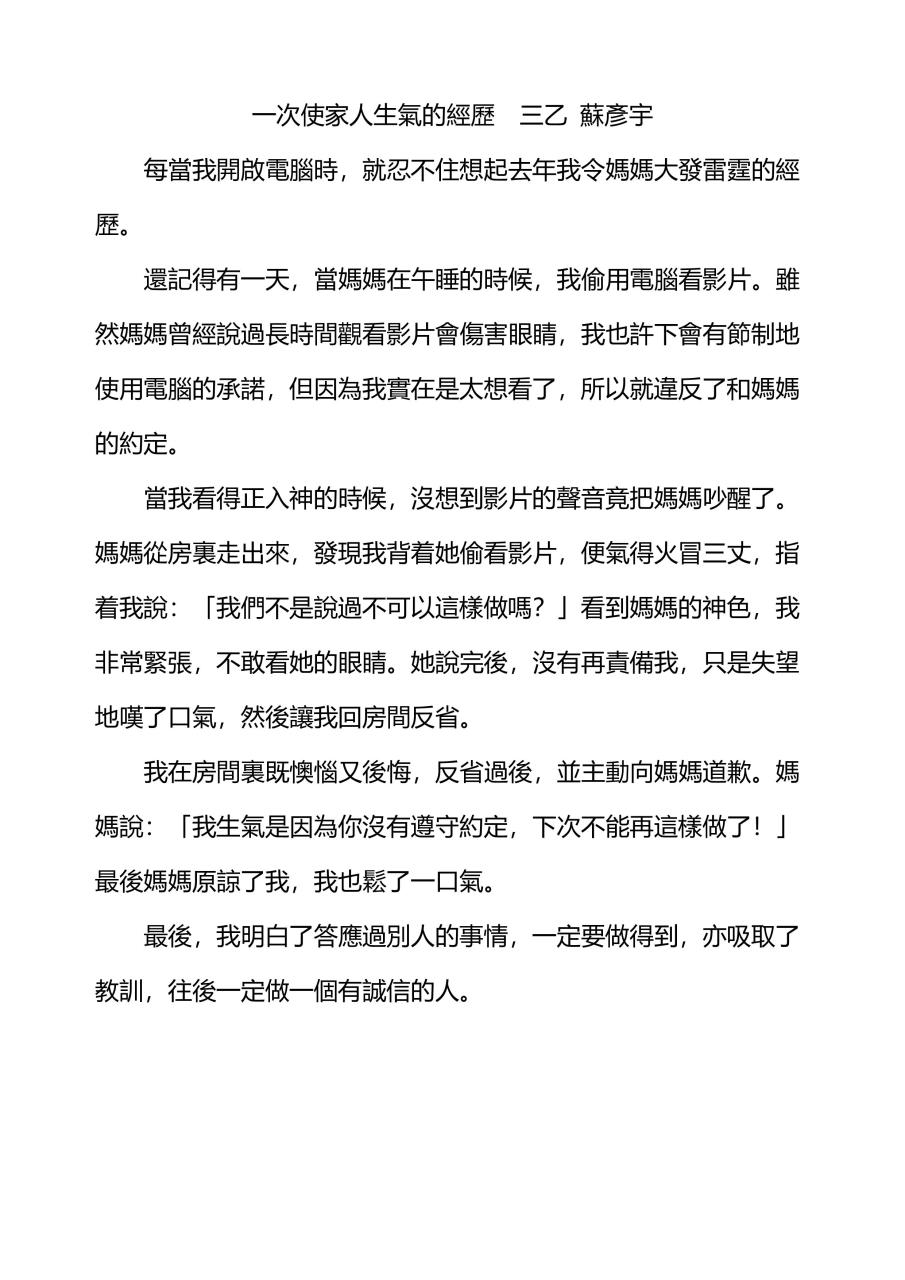 一次使家人生氣的經歷 三甲 黃天嵐-0