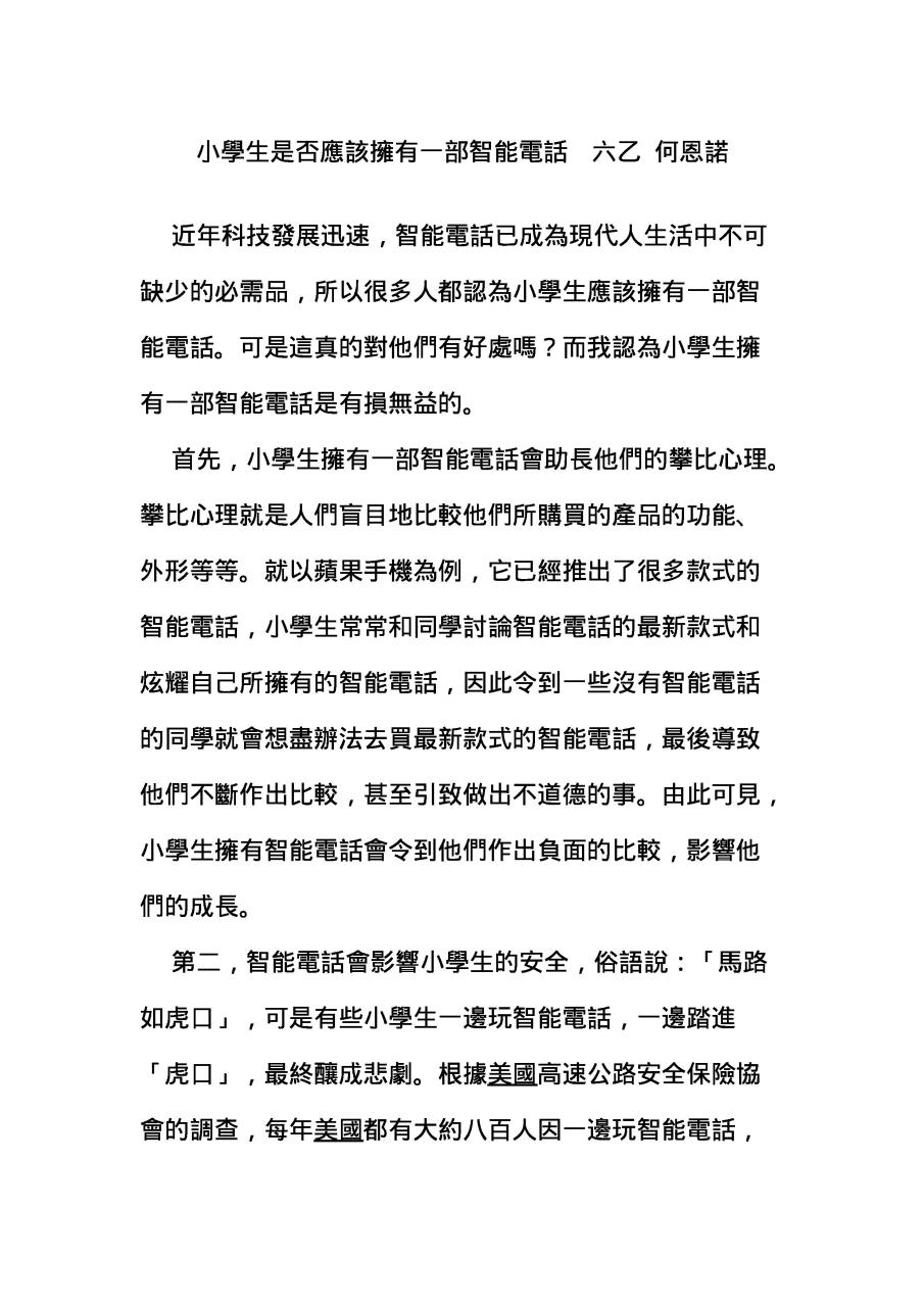小學生是否應該擁有一部智能電話 六乙 何恩諾_0