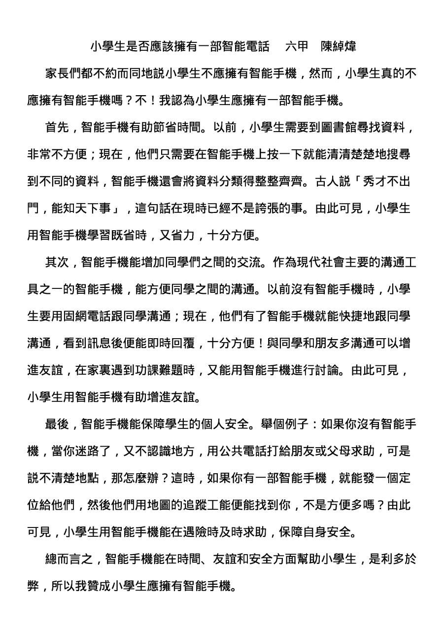 小學生是否應該擁有一部智能電話 六甲 陳綽煒_0