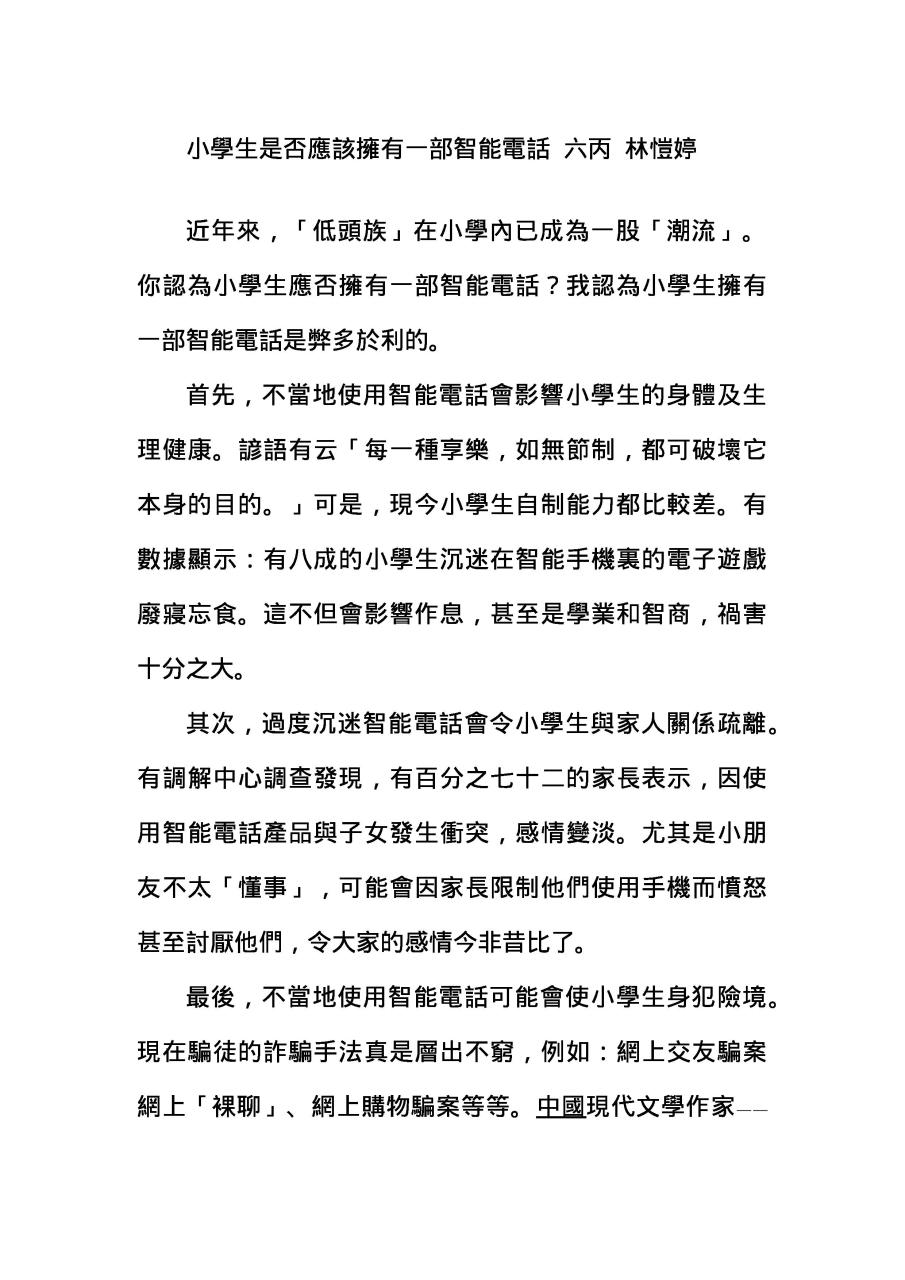 小學生是否應該擁有一部智能電話 六丙 林愷婷_1